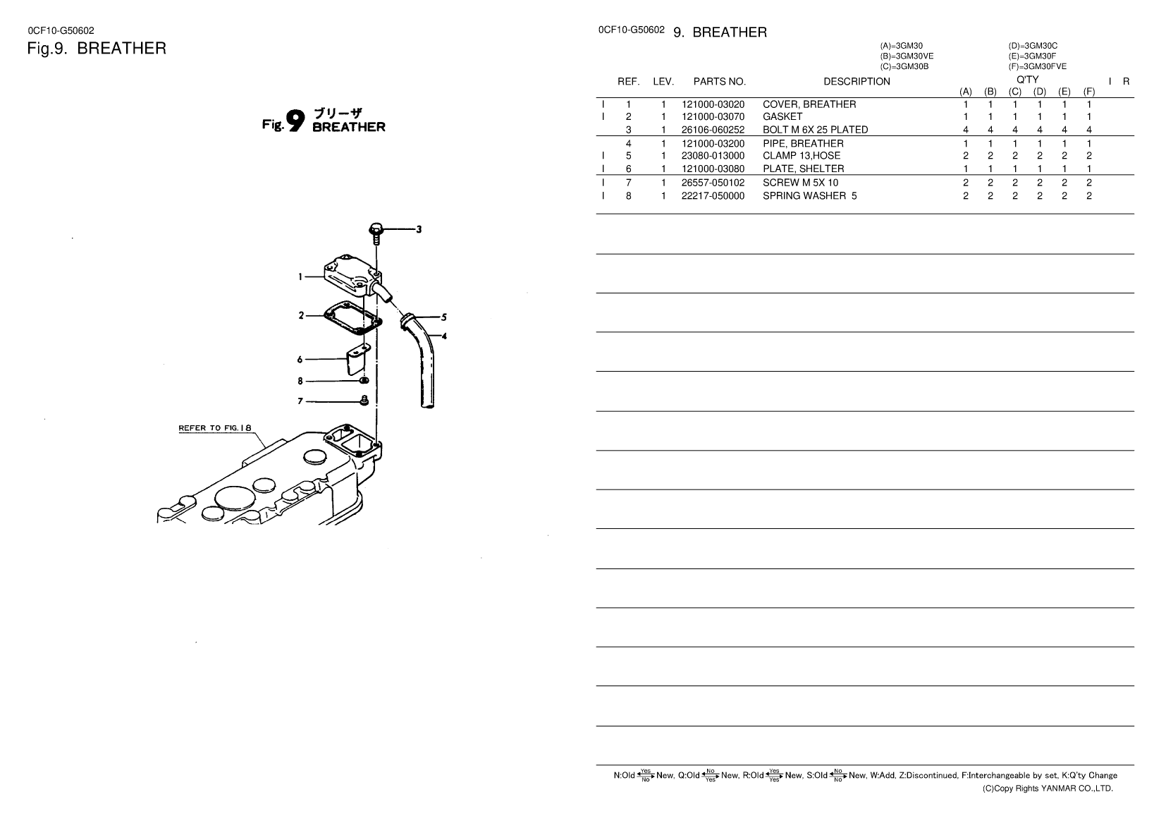 PARTS NovPublished parts ts tay st partts y wiwits taRef Noy with No List Ref No 1 1 efore c sy R fw parts y w of y wa pa1 Main parts Assembly parts2 224 1 3 224 2 NoteParts that are not for sale are party but not Mark a pa tawi iny sy paEffective Machine No a pa ef No w t AF cte A te y fw t sy Exte 2224 224 and 224 224 areor parts pr oror mtifte 3AEis t E E Seri Numrfor t column Aml this case 4JHDTafter parts Fits ymts parts t at t sy st11ftProduct Symbol Product Symbol oNevirDEngine No New Old Parts are both New Old Parts are both not newly added Changes only for used parts quantities New Part is for Old Part but Old Part is not New PartNew Part is not for Old Part but Old Part is New PartFUEL INJECTION M 162399999W M COMPEMSATOR TYPE OPTIONALPART TO E001554JHDT YXRU NO LIFTERENGINE LIFTERFLEXIBLE ZINCIR INTAKE MANIFOLDMIXING RODLUB OIL DIPSTICKLUB OIL VALVECOOLING SEA WATER PUMPCOOLING SEA WATER PUMPCOOLING FRESH WATER PUMPCOOLING FRESH WATER COCKCOOLING SEA WATER LINECOOLING FRESH WATER SEA WATER INJECTION PUMPFUEL INJECTION VALVEFUEL STRAINERFUEL INJECTION LINEFUEL INJECTION LINEFUEL LINEFUEL RETURN LINECONTROL DEVICEIDLE ADJUSTERFUEL CONTROL DEVICEENGINE STOP DEVICESPEED REMOTE CONTROLHAND STARTSTARTING MOTORPC NO COUPLINGCLUTCH REMOTE MOTOR COMPONENT PARTGENERATOR COMPONENT PARTMIXING WASTE BILGE STOP LEVER HOUSINGINPUT SHAFT SUPPORT SHAFTOUTPUT SHAFTREMOTE CONTROL HOUSINGINPUT SHAFT SUPPORT SHAFTOUTPUT SHAFTREMOTE CONTROL HOUSINGINPUT SHAFTSUPPORT SHAFTOUTPUT SHAFTREMOTE CONTROL NOBLOCK ASSY CYLINDERPLUG PT18SPRING PIN CYL HEADNUT CYL HEADGUIDE 30PLUG PF14GASKETBOLT CYL HEADBOLT CYL HEADCOCK ASSY 14ELBOW PT14CONNECTOR BYPATHGASKET HYDOIL PUMPGASKET M 8X 14 PLATEDBOLT M 8X 14 8 CYL HEADGASKET CYL M 8X 32 Rights YANMAR BLOCK ASSY OF MODEL PARTLYDIFFERET BUT NOBLOCK ASSY CYLINDERPLUG PT18SPRING PIN 6X12EEXXXSTUD CYL HEADNUT CYL HEADGUIDE 30PLUG 30EEXXXPLUG PF14GASKETBOLT CYL HEADBOLT CYL HEADCOCK ASSY 14JOINT PIPEGASKET HYDOIL PUMPGASKET M 8X 14 PLATEDBOLT M 8X 14 8 ROUNDGASKET CYL HEADGASKET CYL M 8X 32 Rights YANMAR NOHOUSING ASSY GEARSSPRING PIN 4X10PLUG PT18GASKET GEAR HOUSINGGASKET M 8X 60 PLATEDBOLT M 8X 30 M 8X 85 PLATEDBOLT M 8X 90 PLATEDBOLT M 8X115 PLATEDBOLT M 8X115 PLATEDSEAL OILSEAL TC25 40 8 SC16 28 6 OILBRACKET B REARSCREW 6X10COVER CYL BLOCKGASKET COVERGASKET M 6X 12 PLATEDBOLT M 6X 14 PLATEDCCopy Rights YANMAR NOHOUSING ASSY GEARSSPRING PIN 4X10PLUG PT18GASKET GEAR HOUSINGGASKET M 8X 60 PLATEDBOLT M 8X 30 M 8X 85 PLATEDBOLT M 8X 90 PLATEDBOLT M 8X115 PLATEDBOLT M 8X115 PLATEDSEAL OILSEAL TC25 40 8 SC16 28 6 OILCOVER BLINDSCREW 6X10COVER CYL BLOCKGASKET COVERGASKET M 6X 12 PLATEDBOLT M 6X 14 PLATEDCCopy Rights YANMAR OF PART NO DESCRIPTION R I QTY F D C B APAN LUB OILGASKET OIL SUMPBOLT M 6X 20 21 21 21CCopy Rights YANMAR NO I QTY F D C B A E FLANGE MOUNTING 12817001600 1 1 1 1 1 1 1 BOLT M10X 25 PLATEDPLUG 18 23887180002 1 3 1 1 1 1 1CCopy Rights YANMAR NO DESCRIPTION R I QTY F D CHOUSING FLYWHEELBOLT WWASHER M10X25PLUG 18 23887180002 1 3 1CCopy Rights YANMAR NOHOUSING ASSY METALSEAL OILBOLT WWASHER M8X20HOUSING ASSYBOLTBOLT 12145002320 1 21 1 1 1 1 1 1 1 MAIN METAL 025US 12145002370 1 22 1 1 1 1 1 1 1 MAIN METAL 025US 12145002380 1 23 1CCopy Rights YANMAR NOCOVER M 6X 25 PLATEDPIPE BREATHERCLAMP 13HOSEPLATE SHELTERSCREW M 5X 10SPRING WASHER 5CCopy Rights YANMAR NO I QTY F D C B A E LABEL 17708802430 1 1 1 1 1 LABEL 10558207061 1 2 1 RIVET 10221007990 1 3 2 LABEL 12761107350 1 4 1EE08792LABEL Rights YANMAR NO R I QTY F D C B A E LIFTER ENGINE 12157507230 1 1 1 1 1 1 ILOCK NUT M12 PLATED 26776120002 1 3 1 1 1 1CCopy Rights YANMAR NO I QTY F D C B A E LIFTER ENGINE 12869507230 1 1 1 1 LIFTER ENGINE 12157507240 1 2 1 1 SPACER 12337203150 1 3LOCK NUT M12 PLATED 1CCopy Rights YANMAR NOBRACKET A ENGINEBRACEKT A REARBRACKETB REARBOLT WWASHER M12X30BOLT M10X 25 PLATED 1 5 4 4 4 4 4 4CCopy Rights YANMAR NOMOUNTING FLEXIBLE 12827008341 1 2 2 2 2CCopy Rights YANMAR NO E PLUG NPTF 1 12827009300 2 1 2 2 2 2 PACKING 12321009310 2 2 2 2 2 2 ZINC ANTICORROSIVE 27210200300 2 3 2 2 2 2 PLUG 12278009320 2 4 1 1 1 1 PACKING 12321009310 2 5 1 1 1 1 ZINC ANTICORROSIVE 27210200300 2 6 1 1GASKET 25ROUNDCCopy Rights YANMAR NOHEAD ASSY CYLINDERGUIDE VALVEGUIDE VALVEPLUG PT38SCREWVALVE SUCTIONSPRING VALVE STEMSTUD SUPPORTWASHER 10POLISHEDSTUD M 8X 65 COVERGASKET M 8X 30 PLATEDBOLT M 8X 30 PLATEDGASKET 25ROUNDSTUD M 8X 55 PLATEDSPRING WASHER 8SUPPORT ROCKER ARMSUPPORT ROCKER ARMSHAFT ROCKER ARMBALL 1132 STEELWASHERSET SCREW M 8X 10SCREW VALVELOCK NUT M 8 PLATEDSCREW VALVELOCK NUT M 8 PLATEDGASKET CHAMBERCCopy Rights YANMAR Rights YANMAR HEAD ASSY OF MODEL 3GM30F DIFFERET BUT NOHEAD ASSY CYLINDERGUIDE VALVEGUIDE VALVEPLUG PT38SCREWVALVE SUCTIONSPRING VALVE STEMSTUD SUPPORTWASHER 10POLISHEDSTUD M 8X 65 COVERGASKET M 8X 12 PLATEDBOLT M 8X 14 PLATEDBOLT M 8X 25 PLATEDSTUD M 8X 55 PLATEDSUPPORT ROCKER ARMSUPPORT ROCKER ARMSHAFT ROCKER ARMBALL 1132 STEELWASHERSET SCREW M 8X 10SCREW VALVELOCK NUT M 8 PLATEDSCREW VALVELOCK NUT M 8 PLATEDGASKET Rights YANMAR NOBONNET ASSY HEADSHAFT DECOMPRESSION 3 PARALLEL PIN 3X22 22312030220 2 6 3 3 3 3 3 3 ORING 1A P70 24311000070 2 7 3 3 3 3 3BALL 14 STEELCAP LUBOIL SUPPLYORING 1A G350GASKET Rights YANMAR NO DESCRIPTION R I QTY F D C B A E SILENCER AIR INTAKE 12827012500 1ELEMENT AIR INTAKEJOINT PT18WASHER 6BOLT M 6X 14STUD M 8X 55 PLATED 10 2 2 2 2 2 2 NUT M 8 26366080002 1 11 2 2 2 2 2 2CCopy Rights YANMAR BY SIMULTANEOUST WITH NOMANIFOLD ASSY EXHMANIFOLD ASSY M 8X 25PLUG M 8X80SPRING WASHER 8CCopy Rights YANMAR MIXINGELBOW WASHER 8BOLT M 8X 20CCopy Rights YANMAR NO I QTY F D C B A E CAMSHAFT 12837014010 1 1 1 1 1 PLUG 12100014550 2 2 1 1 1 CAM FUEL 12157514090 1 3 1 1 1 GEAR 7X 30BEARING 6205SCREW M 8X 12BOLT M 5X 10CCopy Rights YANMAR NO DESCRIPTION R I QTY F D C B A E CAMSHAFT 12837014010 1 1 1 1 1 PLUG 12100014550 2 2 1 1 1 CAM FUEL 12157514090 1 3 1 1 1 GEAR CAMSHAFT 12935014100 1 4 1 1 1 NUT CAM 12817014150 1 5TAPPETKEY 7X 30BEARING 6205SCREW M 8X 12CCopy R