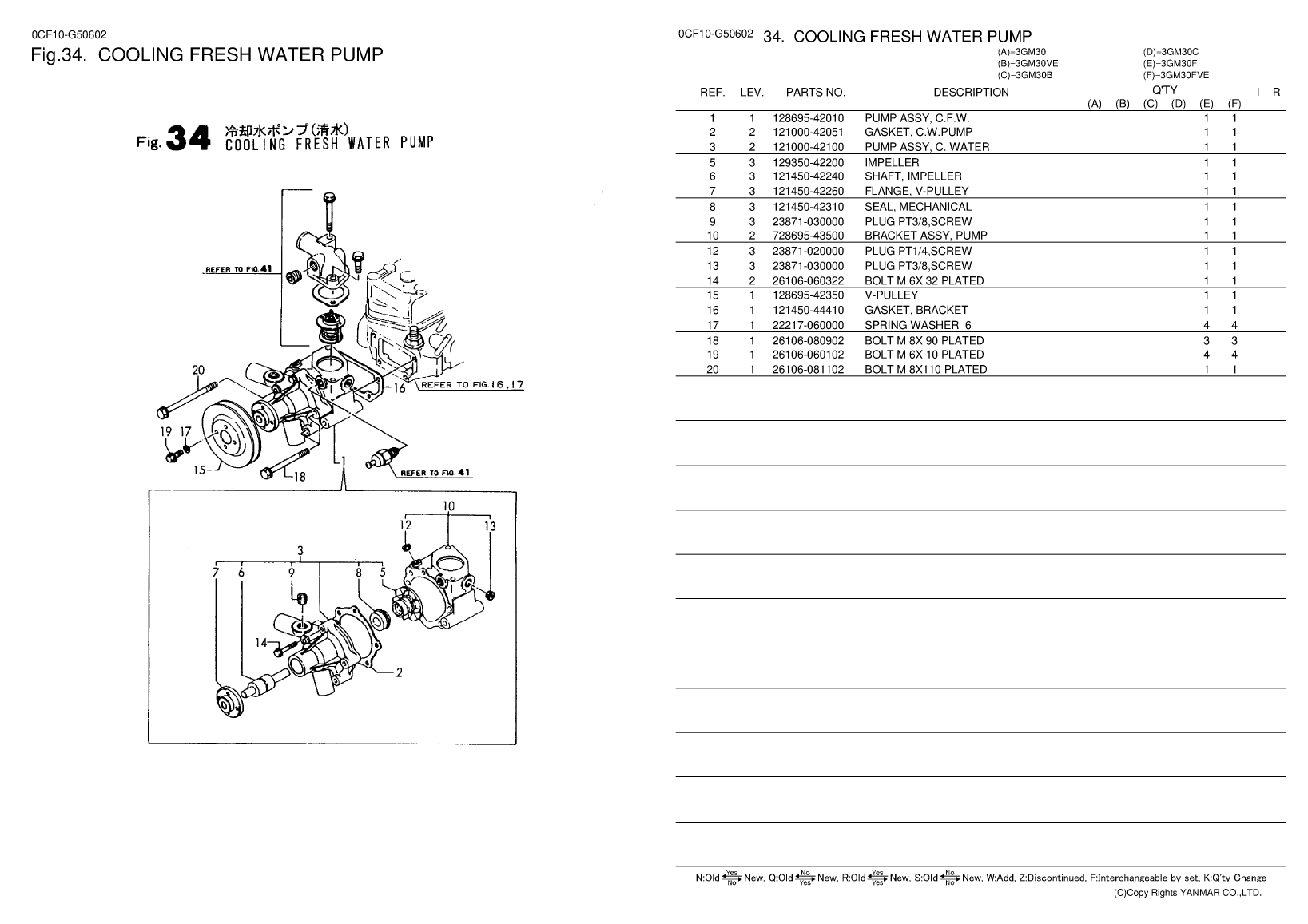 PARTS NovPublished parts ts tay st partts y wiwits taRef Noy with No List Ref No 1 1 efore c sy R fw parts y w of y wa pa1 Main parts Assembly parts2 224 1 3 224 2 NoteParts that are not for sale are party but not Mark a pa tawi iny sy paEffective Machine No a pa ef No w t AF cte A te y fw t sy Exte 2224 224 and 224 224 areor parts pr oror mtifte 3AEis t E E Seri Numrfor t column Aml this case 4JHDTafter parts Fits ymts parts t at t sy st11ftProduct Symbol Product Symbol oNevirDEngine No New Old Parts are both New Old Parts are both not newly added Changes only for used parts quantities New Part is for Old Part but Old Part is not New PartNew Part is not for Old Part but Old Part is New PartFUEL INJECTION M 162399999W M COMPEMSATOR TYPE OPTIONALPART TO E001554JHDT YXRU NO LIFTERENGINE LIFTERFLEXIBLE ZINCIR INTAKE MANIFOLDMIXING RODLUB OIL DIPSTICKLUB OIL VALVECOOLING SEA WATER PUMPCOOLING SEA WATER PUMPCOOLING FRESH WATER PUMPCOOLING FRESH WATER COCKCOOLING SEA WATER LINECOOLING FRESH WATER SEA WATER INJECTION PUMPFUEL INJECTION VALVEFUEL STRAINERFUEL INJECTION LINEFUEL INJECTION LINEFUEL LINEFUEL RETURN LINECONTROL DEVICEIDLE ADJUSTERFUEL CONTROL DEVICEENGINE STOP DEVICESPEED REMOTE CONTROLHAND STARTSTARTING MOTORPC NO COUPLINGCLUTCH REMOTE MOTOR COMPONENT PARTGENERATOR COMPONENT PARTMIXING WASTE BILGE STOP LEVER HOUSINGINPUT SHAFT SUPPORT SHAFTOUTPUT SHAFTREMOTE CONTROL HOUSINGINPUT SHAFT SUPPORT SHAFTOUTPUT SHAFTREMOTE CONTROL HOUSINGINPUT SHAFTSUPPORT SHAFTOUTPUT SHAFTREMOTE CONTROL NOBLOCK ASSY CYLINDERPLUG PT18SPRING PIN CYL HEADNUT CYL HEADGUIDE 30PLUG PF14GASKETBOLT CYL HEADBOLT CYL HEADCOCK ASSY 14ELBOW PT14CONNECTOR BYPATHGASKET HYDOIL PUMPGASKET M 8X 14 PLATEDBOLT M 8X 14 8 CYL HEADGASKET CYL M 8X 32 Rights YANMAR BLOCK ASSY OF MODEL PARTLYDIFFERET BUT NOBLOCK ASSY CYLINDERPLUG PT18SPRING PIN 6X12EEXXXSTUD CYL HEADNUT CYL HEADGUIDE 30PLUG 30EEXXXPLUG PF14GASKETBOLT CYL HEADBOLT CYL HEADCOCK ASSY 14JOINT PIPEGASKET HYDOIL PUMPGASKET M 8X 14 PLATEDBOLT M 8X 14 8 ROUNDGASKET CYL HEADGASKET CYL M 8X 32 Rights YANMAR NOHOUSING ASSY GEARSSPRING PIN 4X10PLUG PT18GASKET GEAR HOUSINGGASKET M 8X 60 PLATEDBOLT M 8X 30 M 8X 85 PLATEDBOLT M 8X 90 PLATEDBOLT M 8X115 PLATEDBOLT M 8X115 PLATEDSEAL OILSEAL TC25 40 8 SC16 28 6 OILBRACKET B REARSCREW 6X10COVER CYL BLOCKGASKET COVERGASKET M 6X 12 PLATEDBOLT M 6X 14 PLATEDCCopy Rights YANMAR NOHOUSING ASSY GEARSSPRING PIN 4X10PLUG PT18GASKET GEAR HOUSINGGASKET M 8X 60 PLATEDBOLT M 8X 30 M 8X 85 PLATEDBOLT M 8X 90 PLATEDBOLT M 8X115 PLATEDBOLT M 8X115 PLATEDSEAL OILSEAL TC25 40 8 SC16 28 6 OILCOVER BLINDSCREW 6X10COVER CYL BLOCKGASKET COVERGASKET M 6X 12 PLATEDBOLT M 6X 14 PLATEDCCopy Rights YANMAR OF PART NO DESCRIPTION R I QTY F D C B APAN LUB OILGASKET OIL SUMPBOLT M 6X 20 21 21 21CCopy Rights YANMAR NO I QTY F D C B A E FLANGE MOUNTING 12817001600 1 1 1 1 1 1 1 BOLT M10X 25 PLATEDPLUG 18 23887180002 1 3 1 1 1 1 1CCopy Rights YANMAR NO DESCRIPTION R I QTY F D CHOUSING FLYWHEELBOLT WWASHER M10X25PLUG 18 23887180002 1 3 1CCopy Rights YANMAR NOHOUSING ASSY METALSEAL OILBOLT WWASHER M8X20HOUSING ASSYBOLTBOLT 12145002320 1 21 1 1 1 1 1 1 1 MAIN METAL 025US 12145002370 1 22 1 1 1 1 1 1 1 MAIN METAL 025US 12145002380 1 23 1CCopy Rights YANMAR NOCOVER M 6X 25 PLATEDPIPE BREATHERCLAMP 13HOSEPLATE SHELTERSCREW M 5X 10SPRING WASHER 5CCopy Rights YANMAR NO I QTY F D C B A E LABEL 17708802430 1 1 1 1 1 LABEL 10558207061 1 2 1 RIVET 10221007990 1 3 2 LABEL 12761107350 1 4 1EE08792LABEL Rights YANMAR NO R I QTY F D C B A E LIFTER ENGINE 12157507230 1 1 1 1 1 1 ILOCK NUT M12 PLATED 26776120002 1 3 1 1 1 1CCopy Rights YANMAR NO I QTY F D C B A E LIFTER ENGINE 12869507230 1 1 1 1 LIFTER ENGINE 12157507240 1 2 1 1 SPACER 12337203150 1 3LOCK NUT M12 PLATED 1CCopy Rights YANMAR NOBRACKET A ENGINEBRACEKT A REARBRACKETB REARBOLT WWASHER M12X30BOLT M10X 25 PLATED 1 5 4 4 4 4 4 4CCopy Rights YANMAR NOMOUNTING FLEXIBLE 12827008341 1 2 2 2 2CCopy Rights YANMAR NO E PLUG NPTF 1 12827009300 2 1 2 2 2 2 PACKING 12321009310 2 2 2 2 2 2 ZINC ANTICORROSIVE 27210200300 2 3 2 2 2 2 PLUG 12278009320 2 4 1 1 1 1 PACKING 12321009310 2 5 1 1 1 1 ZINC ANTICORROSIVE 27210200300 2 6 1 1GASKET 25ROUNDCCopy Rights YANMAR NOHEAD ASSY CYLINDERGUIDE VALVEGUIDE VALVEPLUG PT38SCREWVALVE SUCTIONSPRING VALVE STEMSTUD SUPPORTWASHER 10POLISHEDSTUD M 8X 65 COVERGASKET M 8X 30 PLATEDBOLT M 8X 30 PLATEDGASKET 25ROUNDSTUD M 8X 55 PLATEDSPRING WASHER 8SUPPORT ROCKER ARMSUPPORT ROCKER ARMSHAFT ROCKER ARMBALL 1132 STEELWASHERSET SCREW M 8X 10SCREW VALVELOCK NUT M 8 PLATEDSCREW VALVELOCK NUT M 8 PLATEDGASKET CHAMBERCCopy Rights YANMAR Rights YANMAR HEAD ASSY OF MODEL 3GM30F DIFFERET BUT NOHEAD ASSY CYLINDERGUIDE VALVEGUIDE VALVEPLUG PT38SCREWVALVE SUCTIONSPRING VALVE STEMSTUD SUPPORTWASHER 10POLISHEDSTUD M 8X 65 COVERGASKET M 8X 12 PLATEDBOLT M 8X 14 PLATEDBOLT M 8X 25 PLATEDSTUD M 8X 55 PLATEDSUPPORT ROCKER ARMSUPPORT ROCKER ARMSHAFT ROCKER ARMBALL 1132 STEELWASHERSET SCREW M 8X 10SCREW VALVELOCK NUT M 8 PLATEDSCREW VALVELOCK NUT M 8 PLATEDGASKET Rights YANMAR NOBONNET ASSY HEADSHAFT DECOMPRESSION 3 PARALLEL PIN 3X22 22312030220 2 6 3 3 3 3 3 3 ORING 1A P70 24311000070 2 7 3 3 3 3 3BALL 14 STEELCAP LUBOIL SUPPLYORING 1A G350GASKET Rights YANMAR NO DESCRIPTION R I QTY F D C B A E SILENCER AIR INTAKE 12827012500 1ELEMENT AIR INTAKEJOINT PT18WASHER 6BOLT M 6X 14STUD M 8X 55 PLATED 10 2 2 2 2 2 2 NUT M 8 26366080002 1 11 2 2 2 2 2 2CCopy Rights YANMAR BY SIMULTANEOUST WITH NOMANIFOLD ASSY EXHMANIFOLD ASSY M 8X 25PLUG M 8X80SPRING WASHER 8CCopy Rights YANMAR MIXINGELBOW WASHER 8BOLT M 8X 20CCopy Rights YANMAR NO I QTY F D C B A E CAMSHAFT 12837014010 1 1 1 1 1 PLUG 12100014550 2 2 1 1 1 CAM FUEL 12157514090 1 3 1 1 1 GEAR 7X 30BEARING 6205SCREW M 8X 12BOLT M 5X 10CCopy Rights YANMAR NO DESCRIPTION R I QTY F D C B A E CAMSHAFT 12837014010 1 1 1 1 1 PLUG 12100014550 2 2 1 1 1 CAM FUEL 12157514090 1 3 1 1 1 GEAR CAMSHAFT 12935014100 1 4 1 1 1 NUT CAM 12817014150 1 5TAPPETKEY 7X 30BEARING 6205SCREW M 8X 12CCopy R
