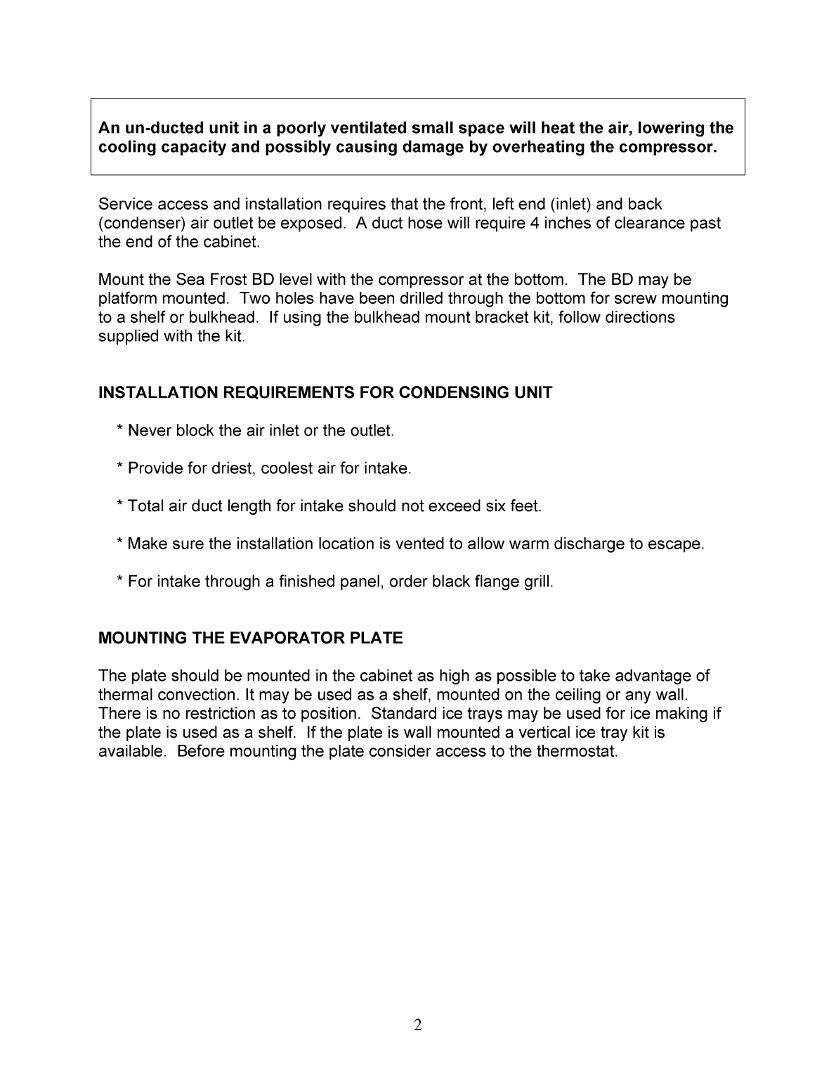 d8681040 18004356708 wwwseafrostcom 9hvccOS9tLv10b uIw6zjakdg HmvpcwY6xAOy 7bYSPGn5h f6aYoPGfr85lq 1IVbnx FSjuzxkSH4 8 DPemu mi vhfecbazvs qokl ptw AAAA IIIIXSOLI G DB qeUOxjVNHC7420 5E0N0Y1e1s1222 2C MYfus sdWME520 2DPjeWKB4 9CPnXKA80 5MZkUH 5 WgQ E2 C nTNIC623AHOW 7zHyOwUvtcskq tp nlkihfedddd10 FECA597D6L4 V3 1 m yiRJD 9854203 scWME8543217HS moSJB741 5JVdtqSH71 7AMZi gWJ70 3IVfyc B BABBB CCDDDDDDHO SWE28FMVllOB61 QzNKq pcVK62GUbp8 DRly5AN ht243 0KXdpz9FSku 4ANZfpyIUjt 3GOVcipx05751 MMMNMLL PPQ7Q 6Ati5V0MD 6320 4 6wmd RKC963104MXet tjaXOG81 JWgy Hb nameaPpost dEeE bch aeeDdD acEeE bch CEeE bch aeeDCD KEeE bch YXRU KV1BfJKAn unducted unit in a poorly ventilated small space will heat the air lowering the cooling capacity and possibly causing damage by overheating the compressor The Sea Frost BD system is shipped precharged with refrigerant This refrigerant is under some pressure Do not fiddle with the connectors or the service ports You might get hurt Wear safety glasses when connecting the compressor This system operates with refrigerant R134a and is pre chargedPBC board fuse is required only if using Electronic Thermostat with the RJ45 6 OPTIONAL REMOTE THERMOSTAT OPERATION Slide the bulb clip onto the edge of the plate and over the sensing bulb The sensing bulb must be in excellent thermal contact with the plate We recommend that the probe be mounted on the plate in the one of the lower mounting positions as shown in the drawing below This is best because these positions remain colder The SEA FROST BD thermostat is variable Turning the knob fully turns the unit OFF The fully clockwise setting is the coldest The thermostat may be adjusted to obtain any temperature desired in the cabinet The thermostat may be calibrated should the warmest setting be too cold To calibrate the thermostat remove the mounting screws and tip the panel forward Remove the electrical tape if necessaryscrew about an inch into the case To lower box temperature rotate this screw counter clockwise One full revolution will change the box temperature approximately 6 degrees F To raise the temperature in the box rotate the screw clockwise Make small adjustments Record all adjustments evaporator plate Allowing Error type Battery protection cutout 1 Electronic unit 2 Battery 3 Main switch optional4 LED for operational errors 5 Fan 6 Thermostat 7 Resister for presetting 8 Resister for presetting 9 Fuse see electrical Our Repair Policy GIPfx22004G5E5 PK Su O6XxyEGXXY Version Distiller 505 Word BD AIRdoc