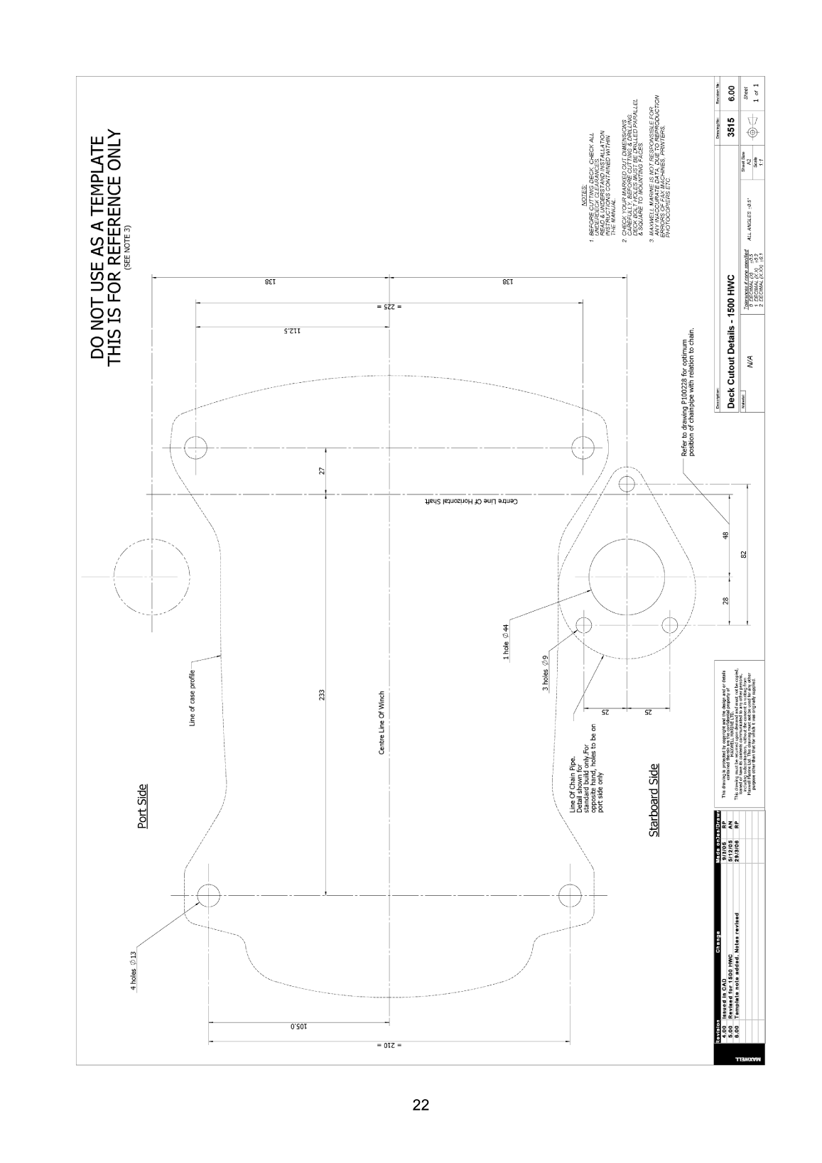 1500 HWCCOPYRIGHT 1991 MAXWELL MARINE LTD MAXWELL MARINE RIGHTS RESERVED Ltd reserves the right to makePATENTS PENDING engineering refinements on allPRINTED IN NEW ZEALAND products without notice Illustrations and specifications not binding as to detailManual ProductCode No P103109 Rev400160310 HWC 1500 OWNERS MANUAL Page NumberCONTENTS 1INTRODUCTION 3PERSONAL SAFETY WARNING 4APPLICATION 6INSTALLATION Location Windlass 7 Chainstopper 8 Chainpipe 8 Footswitches 8 Reversing Solenoid 8 Panel 8 Controls 9 Control Circuits 9 Main Electrical System 10 Hydraulic Systems 11 Preparation and Mounting 12IMPORTANT NOTE TO BOAT BUILDERS 14OPERATION OF THE CONTROL SYSTEM 14OPERATING THE WINDLASS 15MAINTENANCE 17 Servicing of Gearbox 18 Servicing of Motor 18ORDERING SPARE PARTS AND TECHNICAL SUPPORT 18INSTALLATION DRAWINGS HWC 1500 19 Chainpipe Location 20 Deck Cutout Details 21 Wiring Diagram Dual Direction 22 Wiring Diagram Single Direction 23 Hydraulic Control Diagram 24 Hydraulic Schematic 25ASSEMBLY DRAWINGS HWC 1500 Electric Single Chainwheel Single Drum 2627 HWC 1500 Hydraulic Single Chainwheel Single Drum 2829 HWC 1500 Electric Double Chainwheel 3031 HWC 1500 Electric Double Chainwheel Double Drum 3233 Gearbox 34WARRANTY 35 1 INSTALLATION OPERATING INSTRUCTIONS AND SERVICE MANUAL HWC 1500 WINDLASS SINGLE DRUMSINGLE now own a Windlass from MAXWELLS premier range designed for automatic in conjunction with MAXWELLS control equipment you will get system protection andfingertip control of anchor raising or loweringThis Windlass offers exceptional power ease and smoothness of operation The for these Windlasses to be arranged as a handed pair for dual installations on larger craftClutches allow manual control for lowering the anchors under free fall and also allows of the warping drums IMPORTANT FAILURE TO ADHERE TO THE CORRECT APPLICATION INSTALLATION OPERATION ANDTO CARRY OUT THE MAINTENANCE SERVICE AS DESCRIBED HEREIN YOUR SAFETY AND INVALIDATE THE WARRANTYYour MAXWELL Windlass is a precision engineered product Please read these MAXWELL HWC 1500 chain size 10mm 38 short linkMaximum rated load at chainwheel 1500 lbs 680 KgGearbox ratio 561Chain haul speed at no load 30 metresmim 98 FeetminPOWER OPTIONSHWC 1500SUPPLY CABLES See Page 10HYDRAULIC MODELS Maximum Recommended Flow 20 Litremin 53 US GalminMaximum Recommended Pressure 138 BAR 2000 psiHydraulic Supply Lines 12mm Motor Ports UNFOil Viscosity ISO 32 ISO 68 2050C Suitable oils Shell Rimula X 15W40 Shell Myrina M 15W40 Penzoil SAE 10W40 Texaco 2109 SAE 15W Texaco 1814 SAE 10W40 BP HLPHM 3268 Castrol Hysin AWS 3268 BP Autrans T0410 Levels of flowpressure below that specified can be accommodated with a motor change see options below Motor Max FlowMin Max Pressure Max Pull Normal RateMin Option Lt US Gal Bar PSI Kg Lbs Metres Feet P14365 15 40 138 2000 273 600 25 81WEIGHT Product code KGS LBSNett including Emergency Crank P100203 235 517 P100204 235 517 P100205 171 376 3 IMPORTANT PERSONAL SAFETY WARNINGSWHEN USING YOUR WINDLASS AT ALL TIMES PRACTICE GOOD SEAMANSHIP AND AVOIDANY LIKELIHOOD OF INJURY OR ACCIDENT BY ADHERING TO THE FOLLOWING RULESAT ALL TIMES KEEP HANDS FEET LOOSE CLOTHING AND HAIR WELL CLEAR OF USE THE WINDLASS UNDER POWER WITH THE LEVER INSERTED IN THE CLUTCHNUT OR THE EMERGENCY CRANK COLLARWHEN OPERATING THE CHAINWHEEL PAWL KEEP FINGERS AWAY FROM THEINCOMING CHAINWHEN THE WINDLASS IS NOT IN USE OR WHEN USING THE EMERGENCY CRANK MAKESURE THE WINDLASS IS ISOLATED FROM THE POWER SUPPLY BY TURNING THEWINDLASS ISOLATOR SWITCH TO OFFNEVER OPERATE THE WINDLASS FROM A REMOTE STATION WITHOUT A CLEAR VIEWOF THE WINDLASS AND HAVING MADE SURE THAT EVERYONE IS WELL AWAY FROMTHE WINDLASSIF YOUR WINDLASS DOES NOT HAVE A REMOTE CONTROL STATION AND IS OPERATEDFROM THE FOOTSWITCHES ONLY ALWAYS IMMEDIATELY AFTER USE TURN THEWINDLASS ISOLATOR SWITCH TO OFF THIS WILL PREVENT ACCIDENTAL IF YOU OR PASSENGERS ACCIDENTALLY STAND ON FOOTSWITCHES 4 IMPORTANT HINTS FOR SAFE USE OF WINDLASS BE SURE YOUR WINDLASS HAS BEEN CORRECTLY SPECIFIED AND INSTALLED YOURSAND OTHERS SAFETY MAY DEPEND ON IT THE WINDLASS SHOULD BE USED INCONJUNCTION WITH A CHAINSTOPPER OF THE APPROPRIATE SIZE FOR TO BE POSSIBLE THE ANCHOR MUST BE SELF WILL NOT IN ANY WAY BE HELD RESPONSIBLE FOR SELECTION OF AWINDLASS BY OTHERS INCLUDING DISTRIBUTORS AND AGENTS IF IN DOUBT SENDFULL DETAILS OF YOUR CRAFT TO OUR SALES DEPARTMENT FOR APPRAISAL ANDWRITTEN Run the engine whilst raising or lowering the anchor Not only is this a safety precaution it also helps minimise the drain on the batteries2 Always motor up to the anchor while retrieving the chain Do not use the Windlass to pull the boat to the anchor3 If the anchor is fouled do not use the Windlass to break it out With the chainstopper taking the load use the boats engine to break the anchor loose4 Do not use the Windlass as a Bollard Engage the chainstopper after completing the anchoring manoeuvre5 In heavy weather conditions always use a heavy anchor snub from the chain directly to a Bollard or Sampson Post6 DO NOT USE THE CHAINSTOPPER OR WINDLASS AS A MOORING POINT7 ALWAYS TURN THE ISOLATOR SWITCH OFF BEFORE LEAVING THE BOAT8 When using the Windlass DO NOT SWITCH IMMEDIATELY FROM ONE DIRECTION TO THE OTHER WITHOUT WAITING FOR THE WINDLASS TO STOP AS THIS COULD DAMAGE THE WINDLASS Abuse is not covered by Warranty9 The Circuit Breaker and Isolator Switch Panel provides high current protection for the main supply cables and also the means to isolate the circuit When the Isolator Switch is ON red indicator light shows the system can be activated at either the foot switches or the remote control station When the system is not being used ensure that the Isolator Switch is turned OFF10 Never proceed at speed with a bow mounted self launching anchor in position without first ensuring that your winch clutches are fully engaged and having made fast the anchor and engaged your chainstopper DO NOT DEPEND ON THE WINDLASS TO HOLD THE ANCHOR IN ITS BOW R
